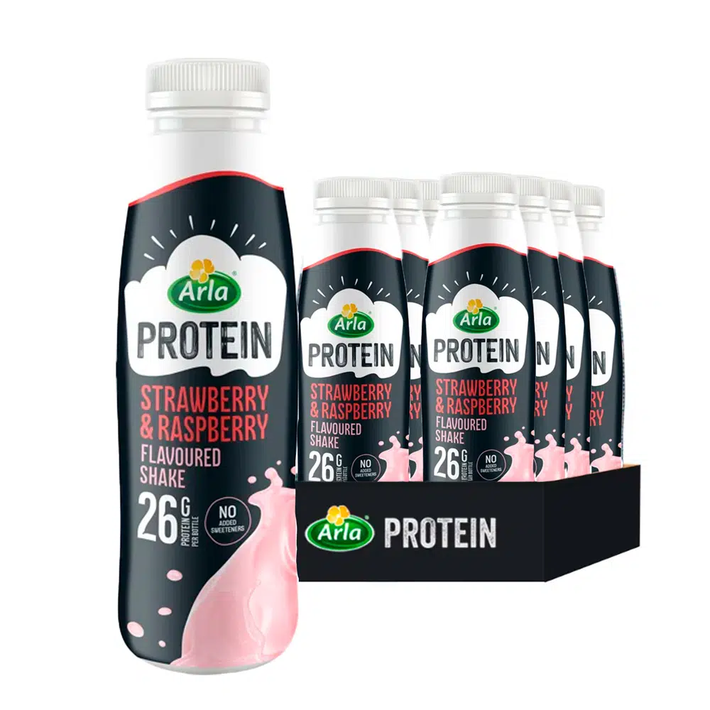 Arla Protein Drik med jordbær og hindbær er en smagfuld og praktisk kilde til kvalitetsprotein i en bekvem flaske. Drikken er designet til dig, der ønsker et hurtigt, nærende og velsmagende mellemmåltid eller efter træning uden at gå på kompromis med smagen.